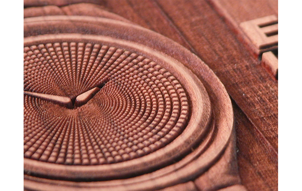 ჭრა სრულდება ასევე CNC როუტერის მეშვეობით, დაზგას უყენდება სხვა თავი და ხდება ჩარჩოსა და მიმართულებების მიცემა.